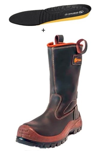 Suela: Superficie antideslizante. Resistente a hidrocarburos y a la abrasión.